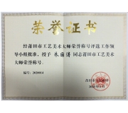 2020年一月荣获莆田市工艺美术大师荣誉称号