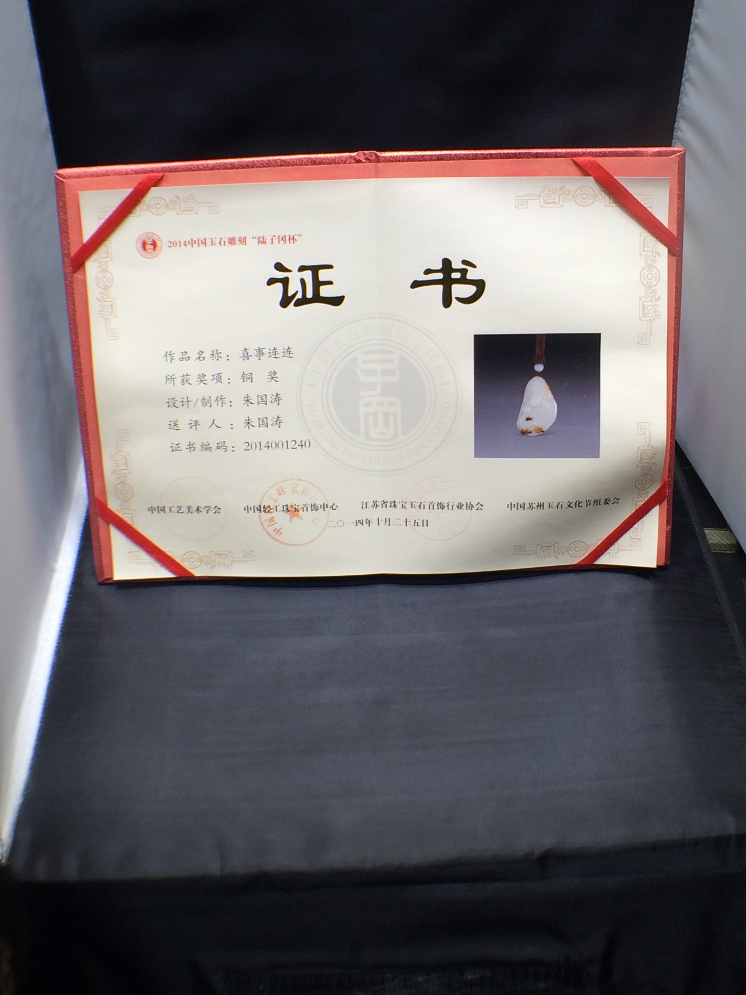 喜事连连荣获2014中国玉石雕刻“陆子冈杯”铜奖